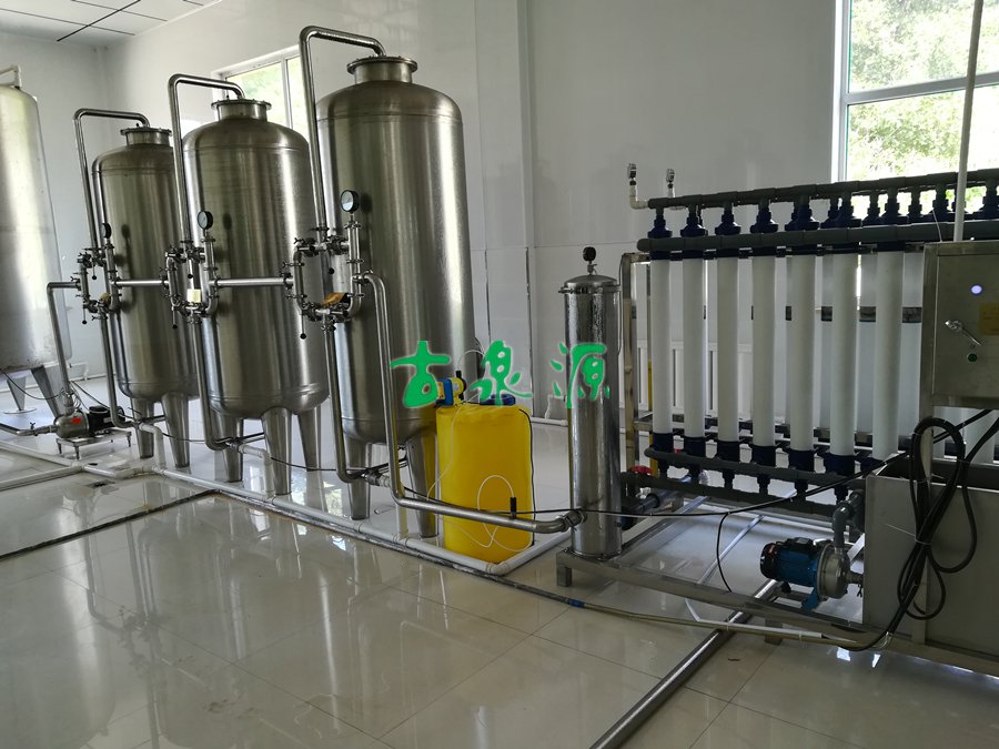 該項目地址位于遼寧省昌圖縣,地區(qū)地下水水質(zhì)相對較好,故此采用超濾工藝對原水進行凈化。將原水水中的有益離子成分進行保留,除去水中99.99%的可溶性固體、細菌、膠體等一系列對人體有害的物質(zhì),最末端采用臭氧進行消毒,保證全部無菌化出廠。
